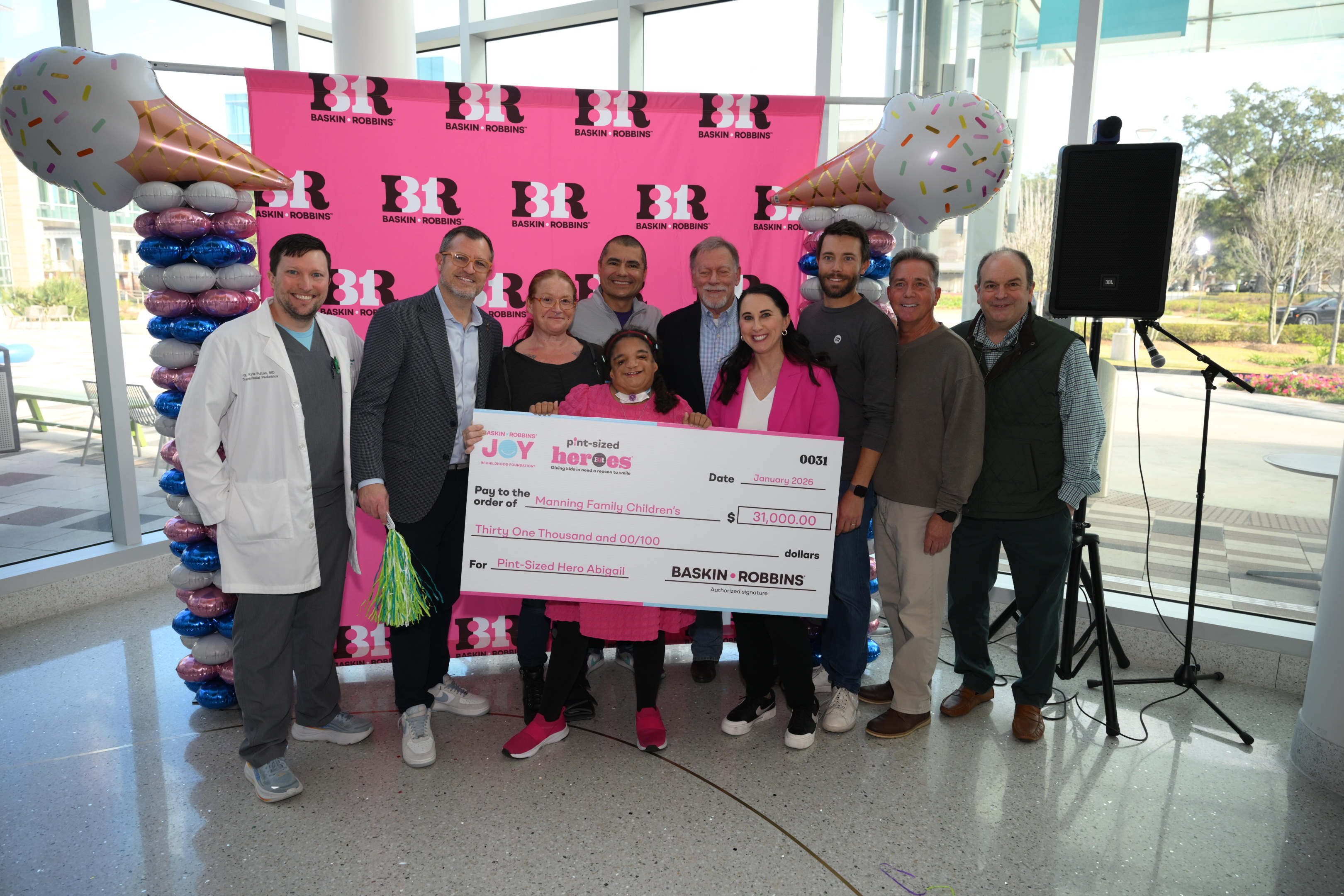 In Abby’s honor, the Baskin-Robbins Joy in Childhood Foundation, alongside Baskin-Robbins Brand Head Jerid Grandinetti and Baskin-Robbins Vice President of Brand Marketing and Culinary Nicole Boutwell, granted $31,000 to Manning Family Children’s. To continue celebrating all of life’s moments with Baskin-Robbins, the brand surprised Abby with a year of free ice cream. The Baskin-Robbins Joy in Childhood Foundation also hosted a Pint-Sized Hero ice cream party for patients and staff at Manning Family Children’s.